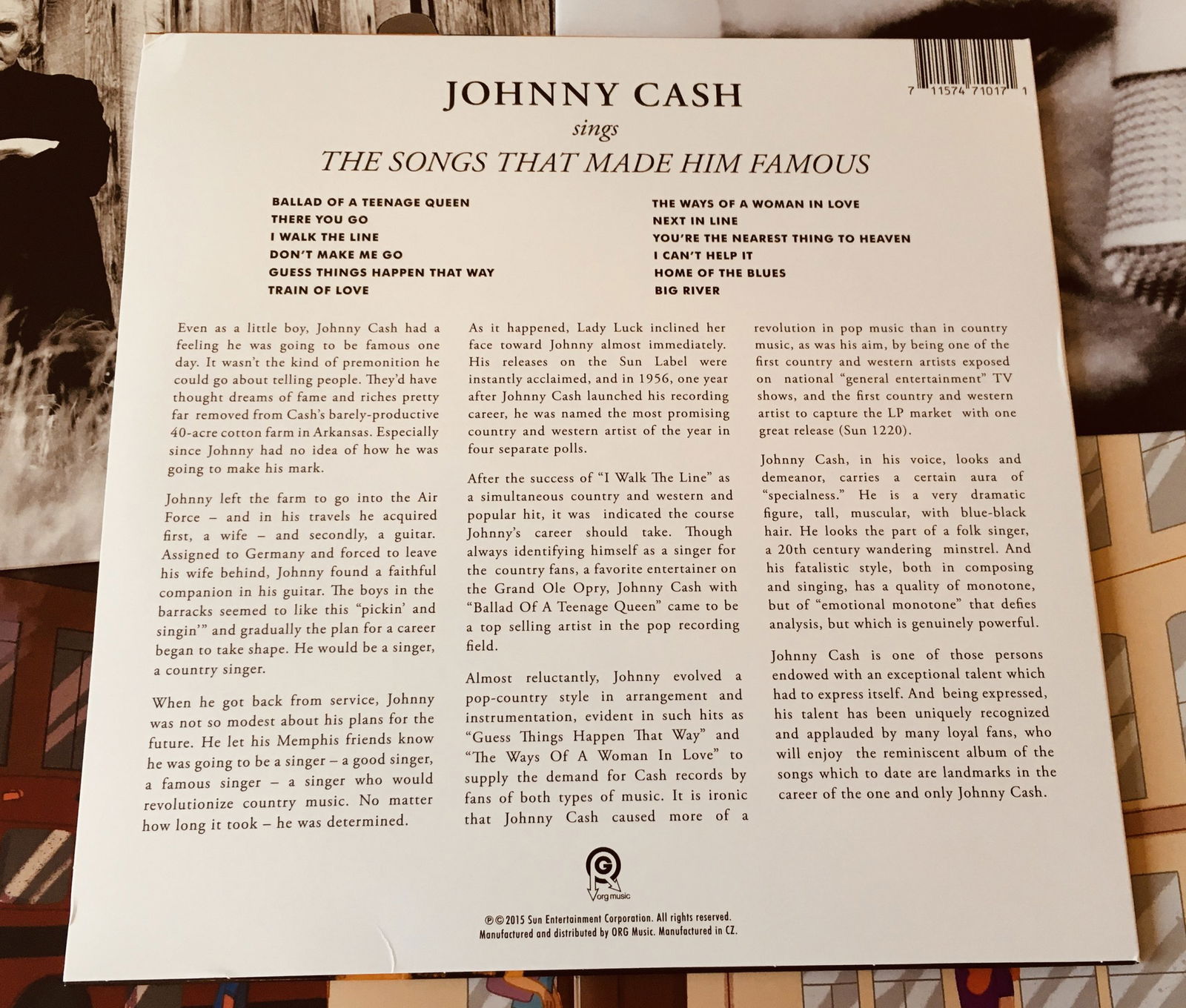 Just FYI – there's a few lovely words about “The Man in Black” on the back cover, so you'll want to do some reading before you go digging in that sleeve.