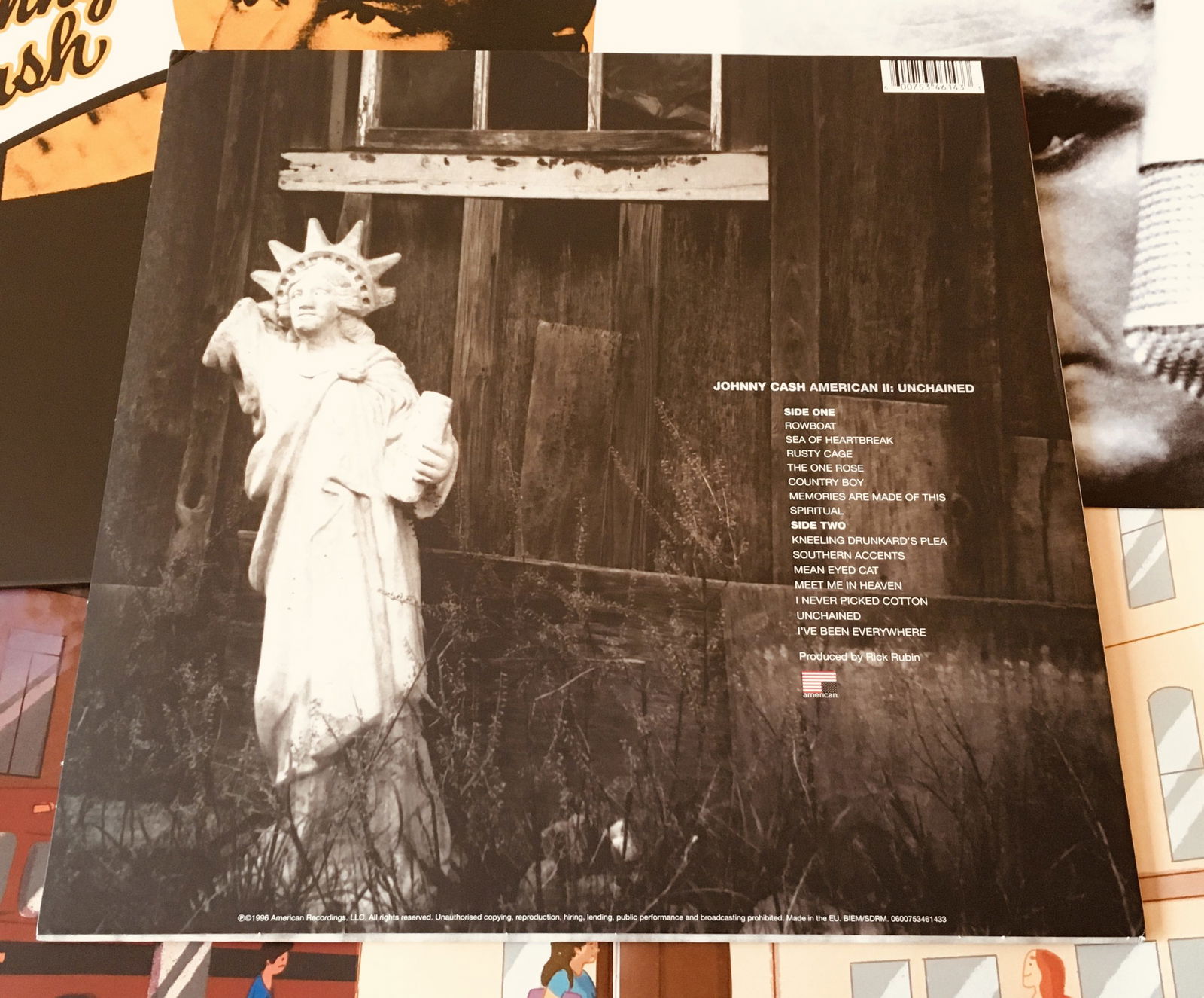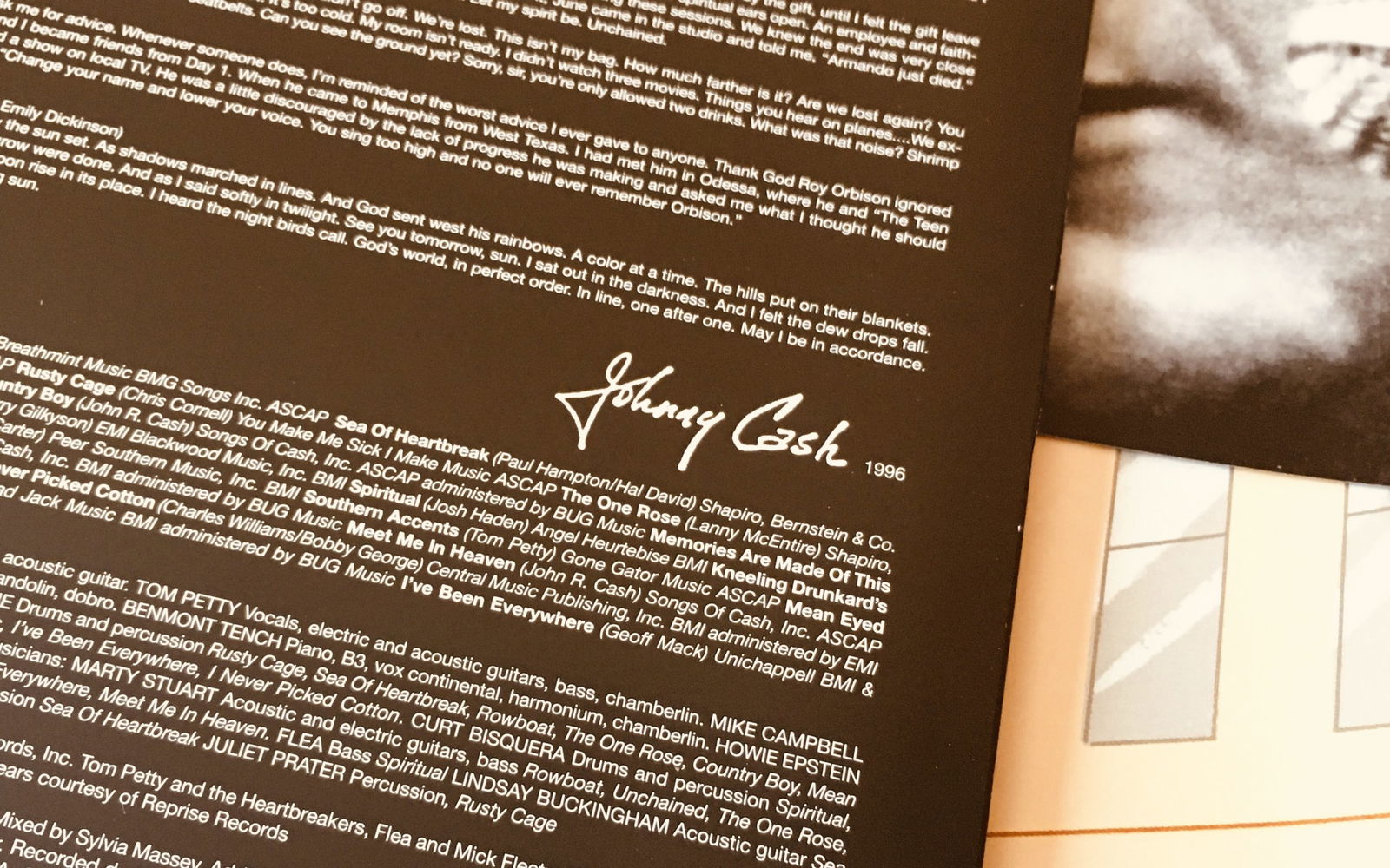 Flip that inner sleeve over, and you'll find some meticulously chosen words about the songs on Unchained from Mr. Cash himself. There's also some album credits and such listed there too.
