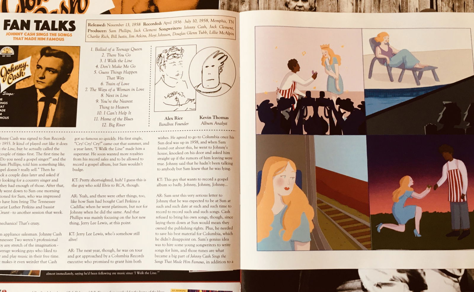 As such, Team Bandbox continues to deliver outstanding content within the pages of those zines. This month’s “Fan Talks” puts Cash's early recordings front and center with a beautifully detailed, track by track exploration of Johnny Cash Sings The Songs That Made Him Famous complete with more stellar original artwork from Bandbox’s in-house illustrator Cou Feis. Meanwhile, “Band Dox” features an in depth breakdown Johnny Cash's enduring legacy, accompanied by a treasure trove of Cash pics from various stages of his decades-long career.
