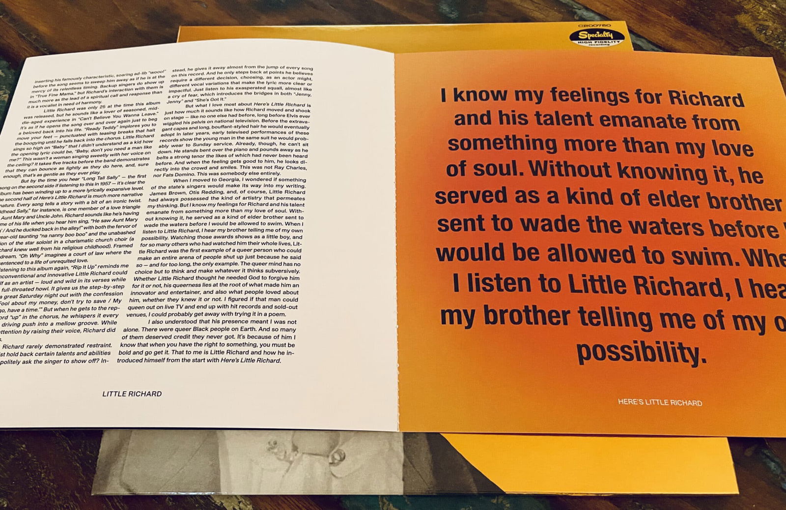 Penned by Mr. Jericho Brown, that booklet contains some fascinating insight on Little Richard's musical beginnings, his enduring legacy, and the recoring of Here's Little Richard. Check it out.