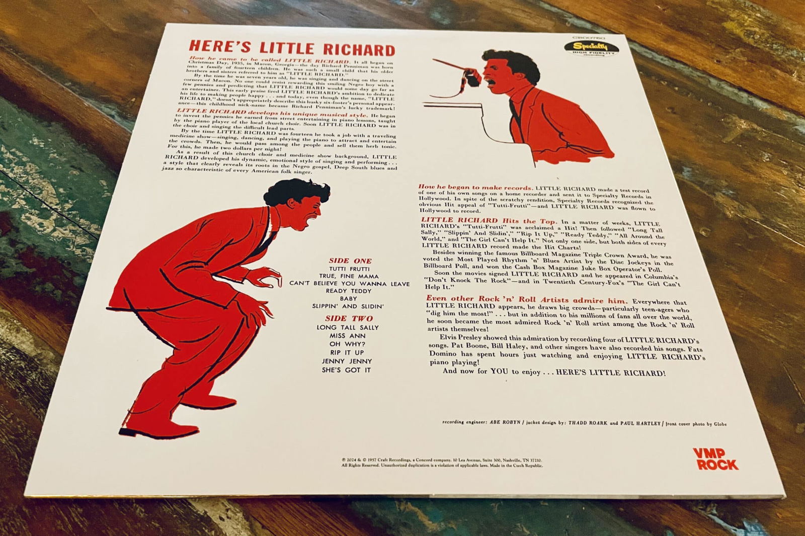As for the back cover, it's got a few well-chosen words about how this album came together as well as a couple of first-rate animations of Little Richard in action. Yes, it's also got the very necessary VMP Rock stamp, forever denoting Here's Little Richard a must-own for any legit fan of the genre.